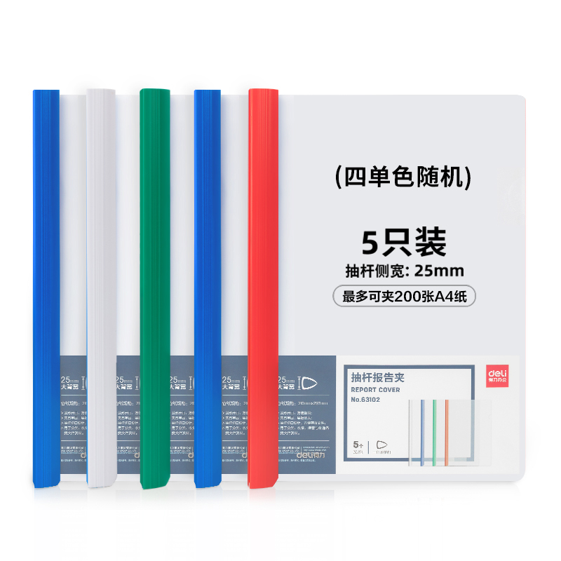 【5个装】得力加厚抽杆夹a4实色塑料透明夹抽杆夹资料册资料夹试卷文具试卷夹文件透明资料夹塑料三角杆63102