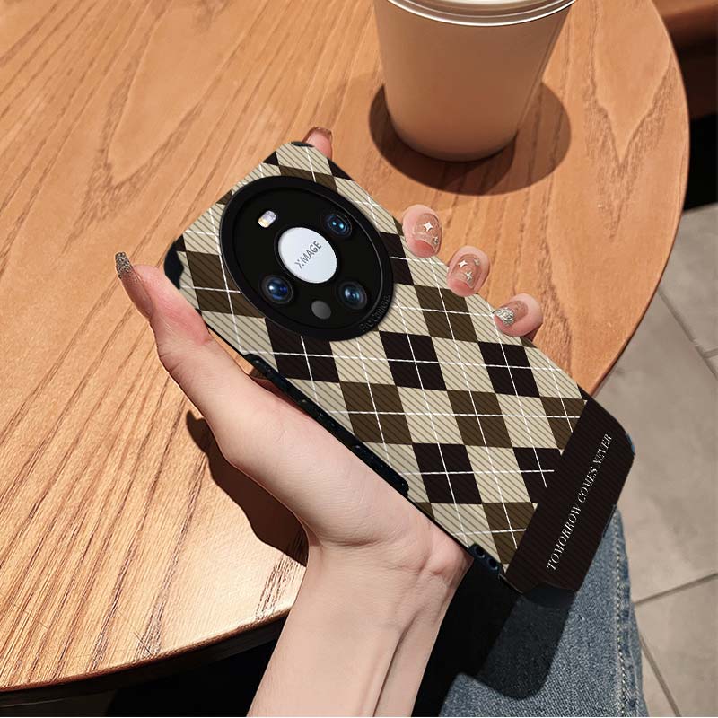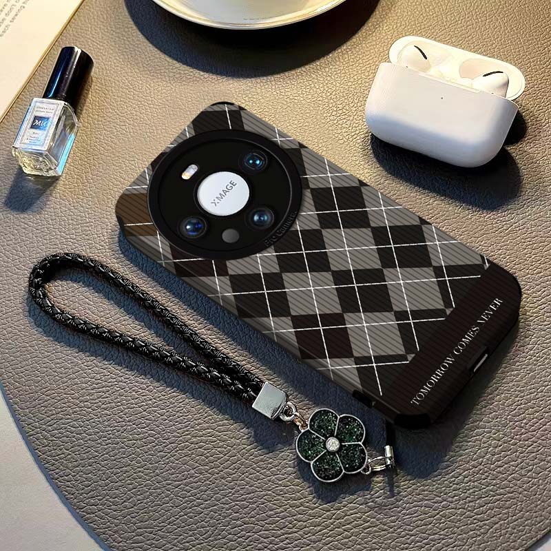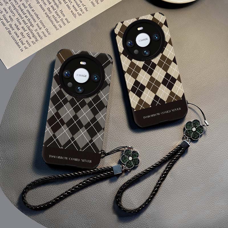 适用华为mate60Pro+手机壳pura70复古棋盘格子magic6543新款奢华nova1211防摔mt5040挂绳荣耀9080女软套30e5G