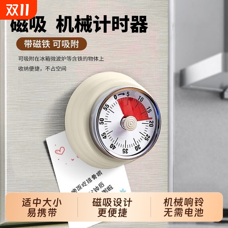 机械金属计时器厨房做饭定时提醒器可视化时间管理闹钟倒计时磁吸