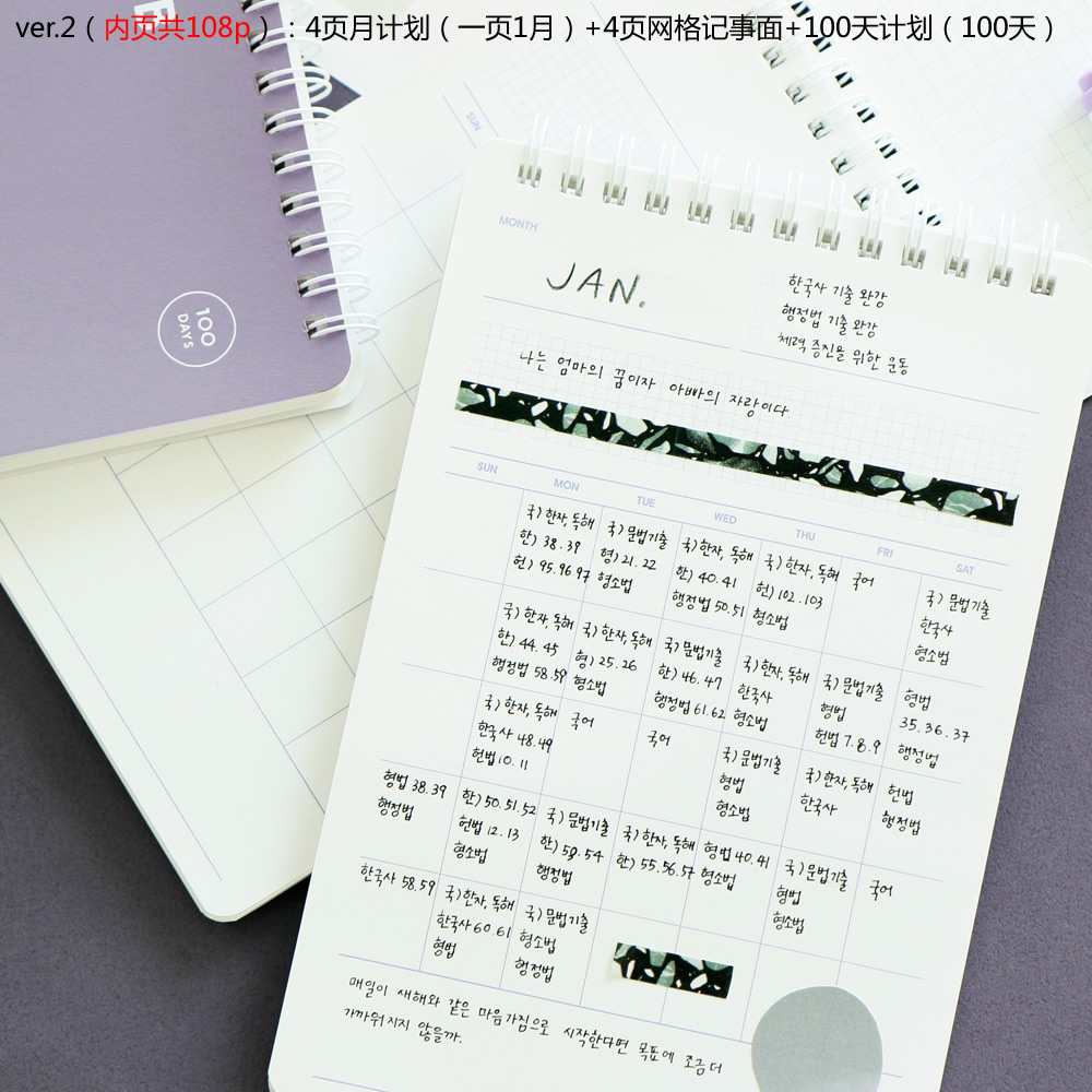 韩国7321简约实用线圈100天学习计划本学生日程规划本减重日记本