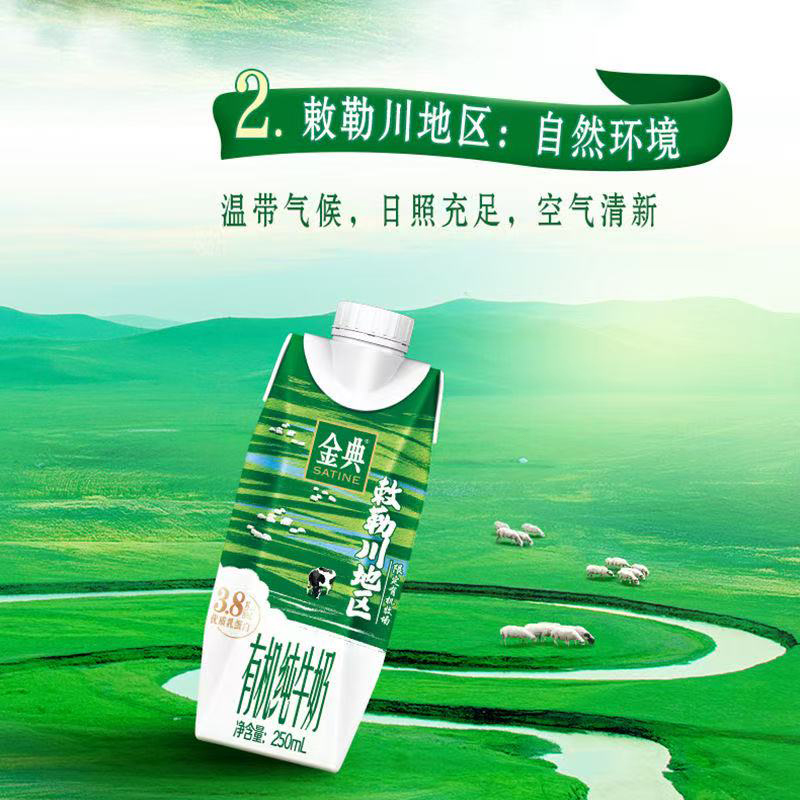 金典梦幻盖有机纯牛奶250ml*10敕勒川限定牧场3.8乳蛋白整箱盒装