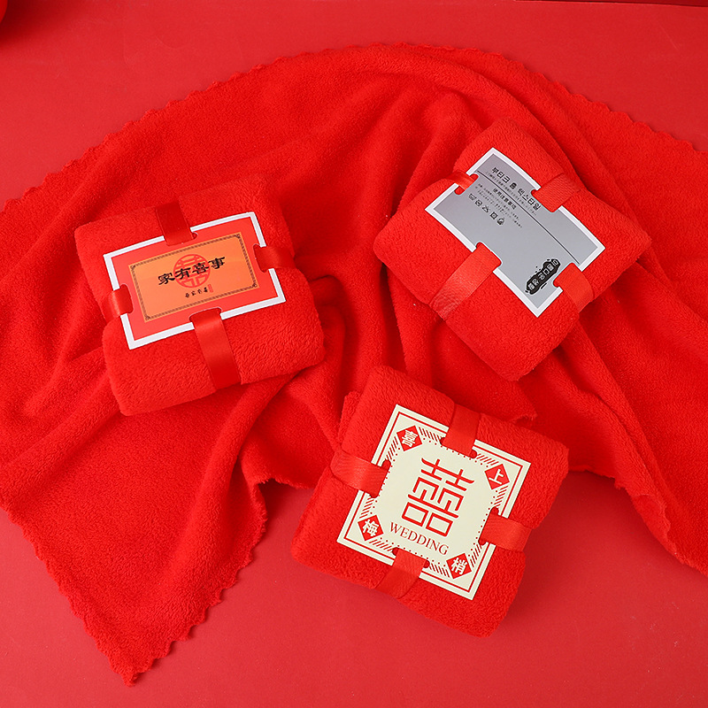 伴手礼喜字红色毛巾面巾结婚喜事条装亲肤吸水不掉色陪嫁回礼柔软