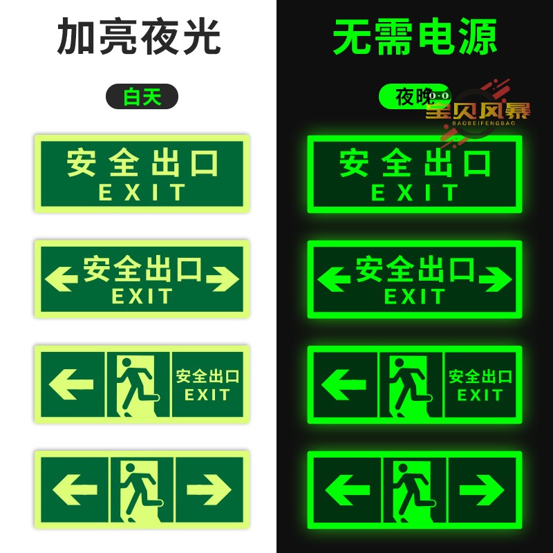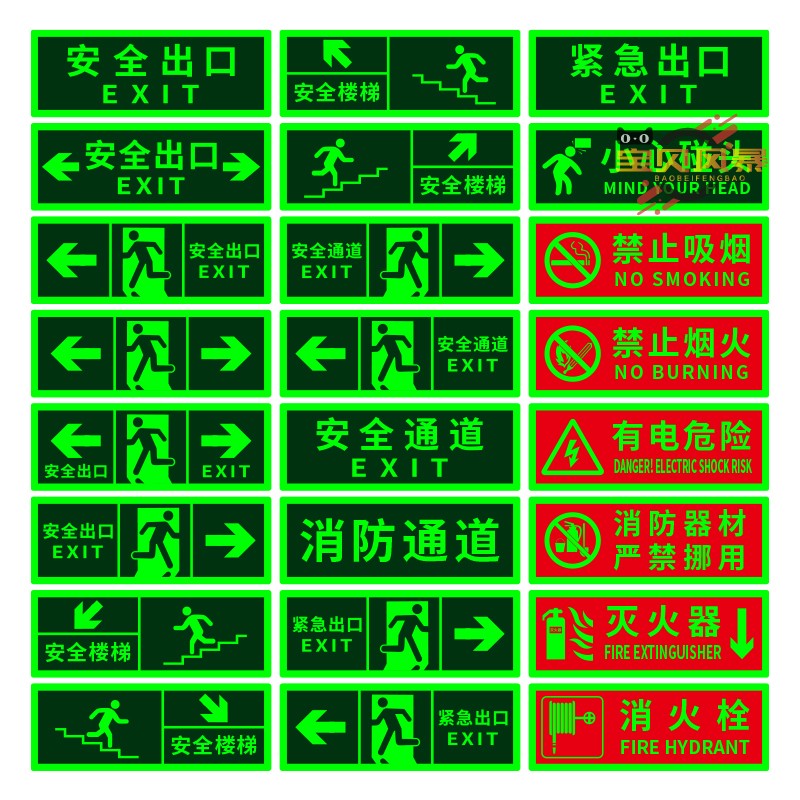 安全出口夜光荧光标识牌疏散指示牌自发光标识标牌应急逃生通道标志楼道墙贴有电提示贴纸吸烟禁止楼梯烟火