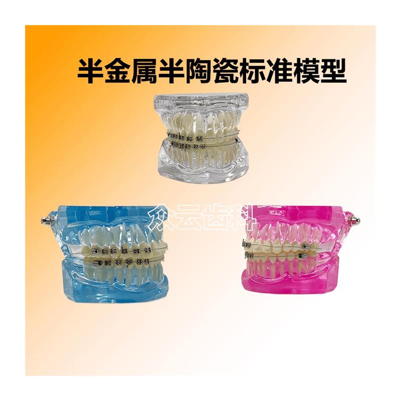 牙科 正畸口腔教学演示沟通模型 半金属半陶瓷托槽对比示范模型