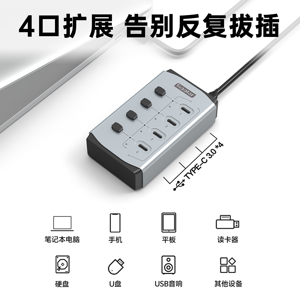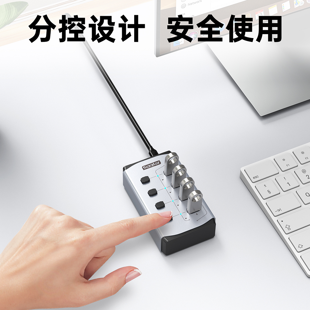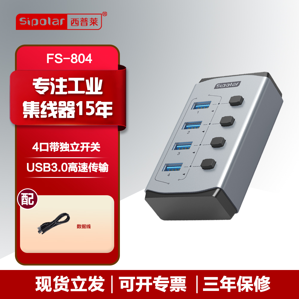 西普莱FS804/FS806/FS809多口独立开关系列笔记本台式机桌面USB3.0高速扩展分线器可外接电源