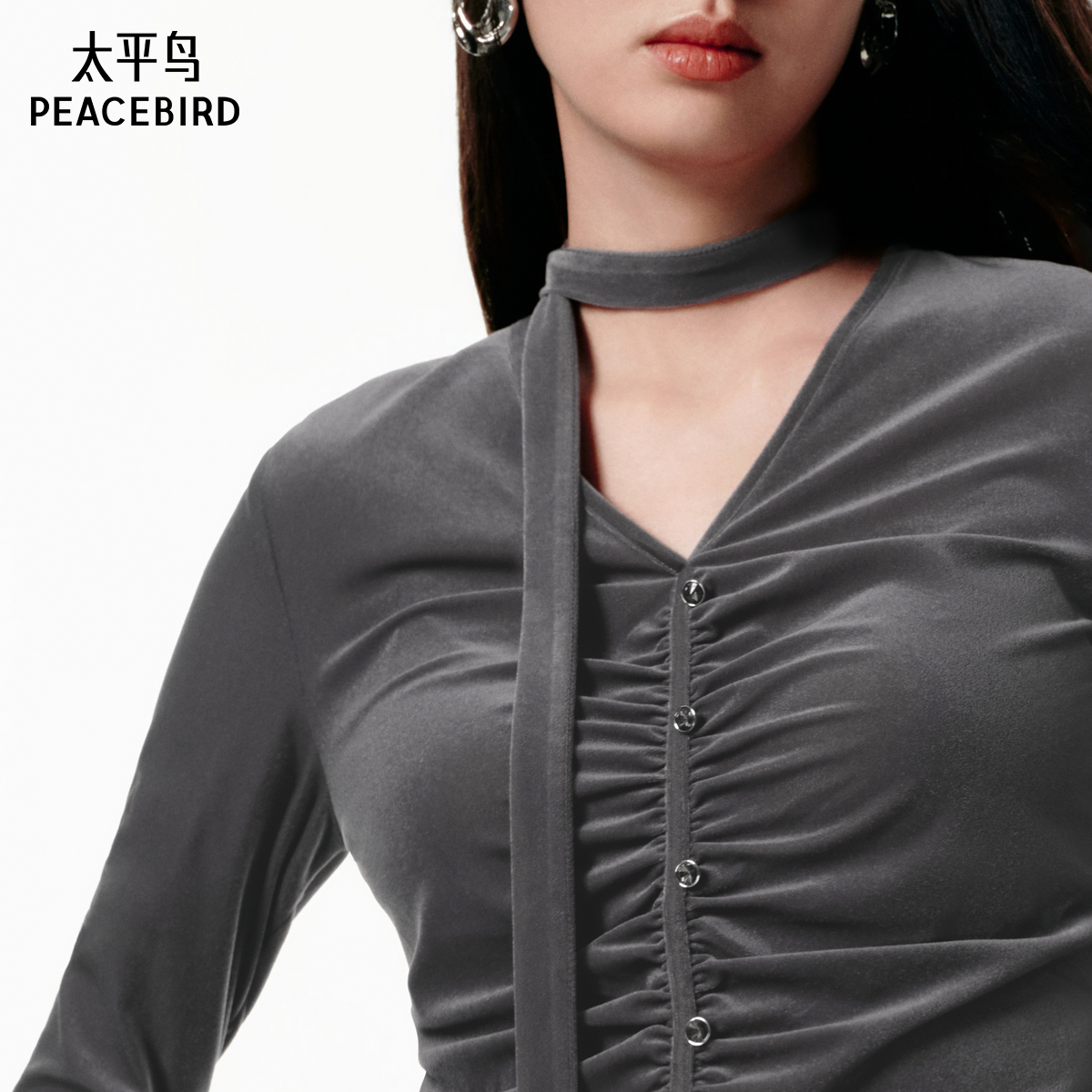 太平鸟女装年秋季款丝绒飘带上衣A1CDE3550