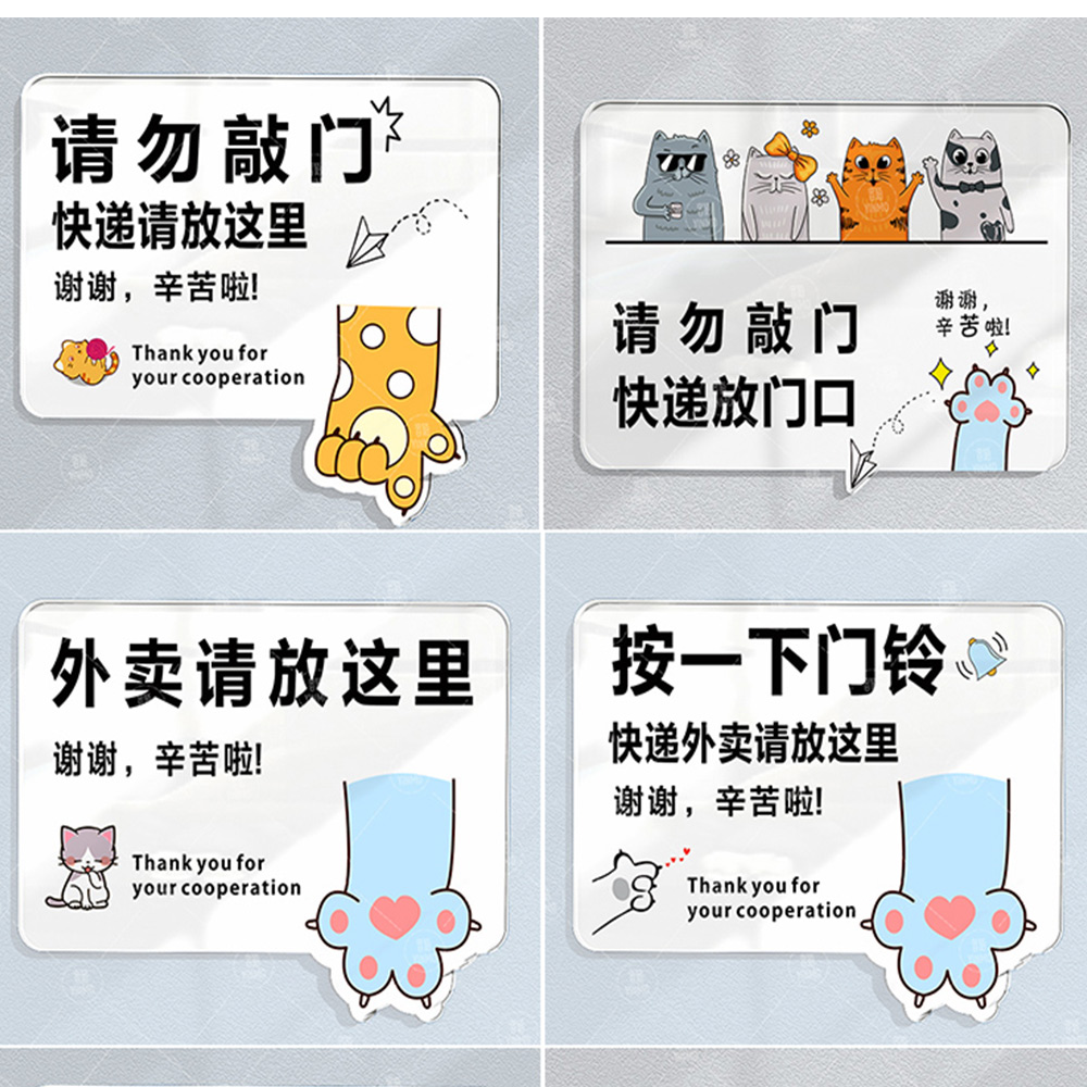 外卖快递请放门口亚克力指示牌创意家用门牌请按门铃敲门放这里提示牌放置点存放处标志提示标示贴请勿标识定