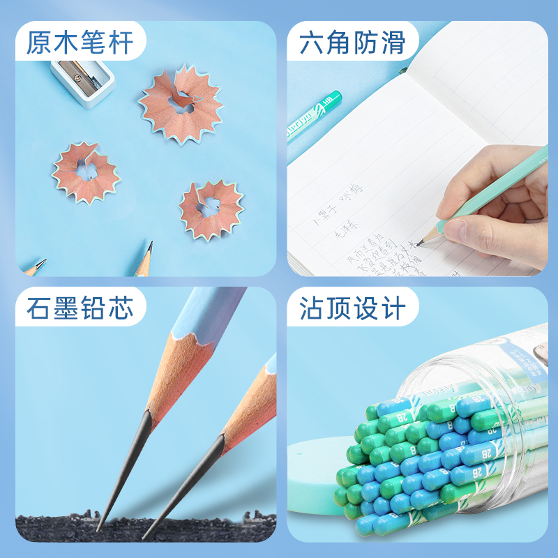 Nusign纽赛黑木铅笔小学生专用hb铅笔2b学生一二年级学习用品考试美术素描得力高端写字安全无毒正姿练字绘画