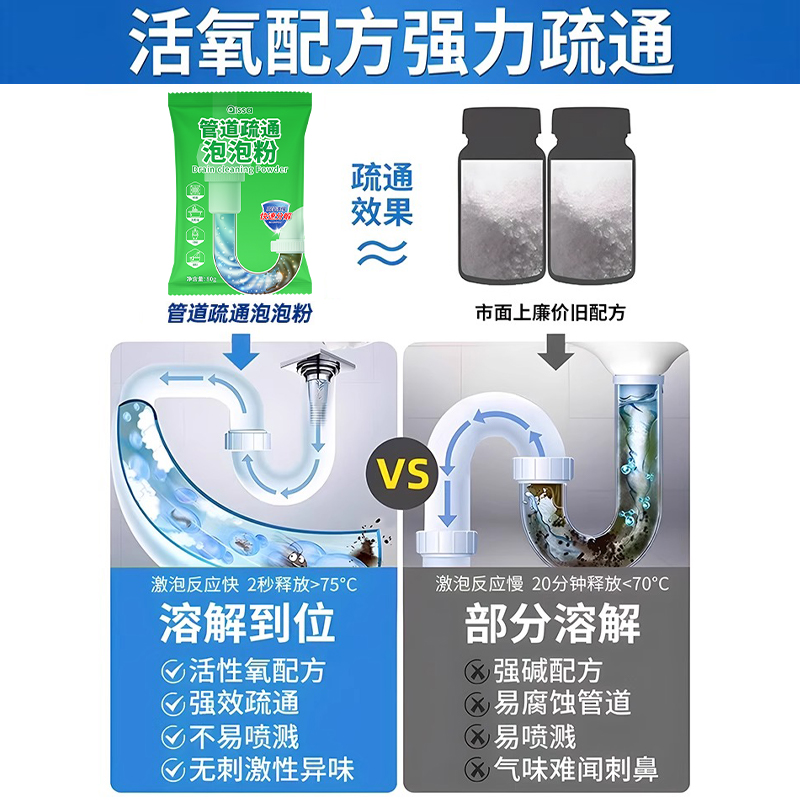 管道下水道强力疏通剂溶解高速疏通泡泡粉厨房马桶除臭剂神器思嘉