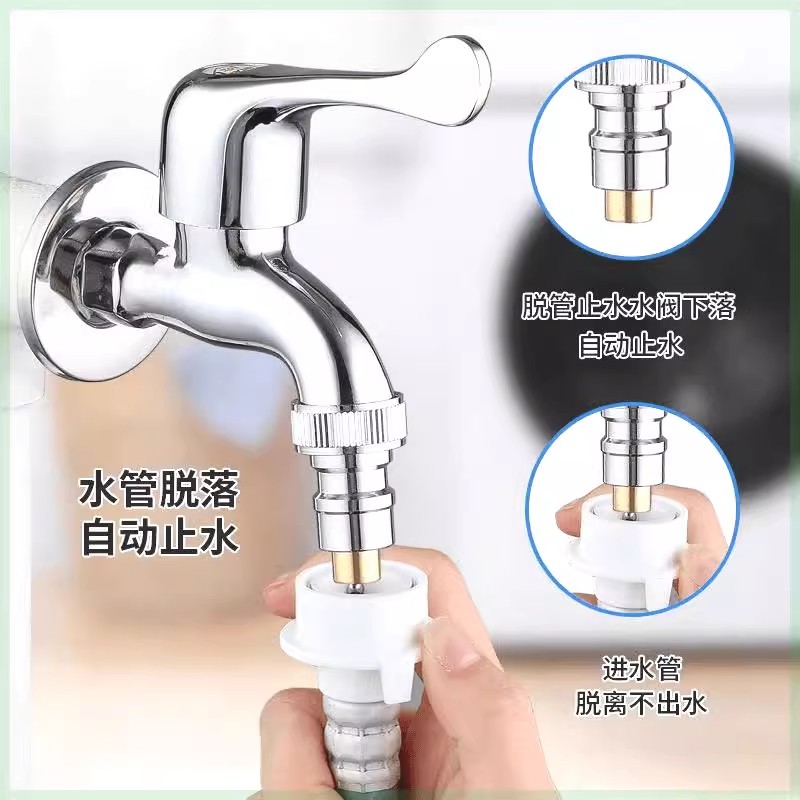 黄铜洗衣机止水接头龙头卡扣快插滚筒水嘴4分头通用脱管自动止水