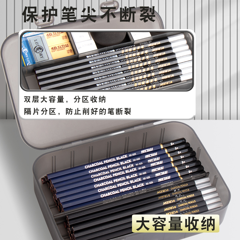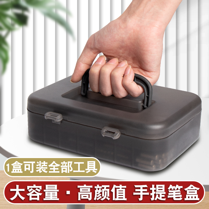 博拉图铅笔盒素描笔盒美术生专用绘画工具双层收纳盒子大容量绘画装笔透明塑料超文具盒画笔手提高级多功能