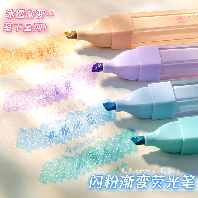 冰透渐变!爆闪闪光荧光笔高颜值ins风记号笔彩色划重点标记笔小学生用做笔记专用的银光手帐笔带闪粉细闪