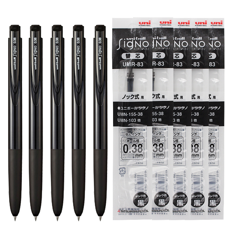 日本uniball三菱umn155中性笔按动水笔Signo黑色考试笔学生用K6笔芯替芯0.38/0.5mm签字笔低阻尼UMN-155文具
