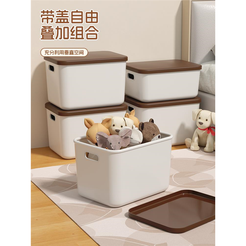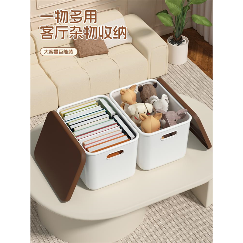桌面收纳盒化妆品零食整理长方形塑料杂物储物筐厨房置物带盖盒子