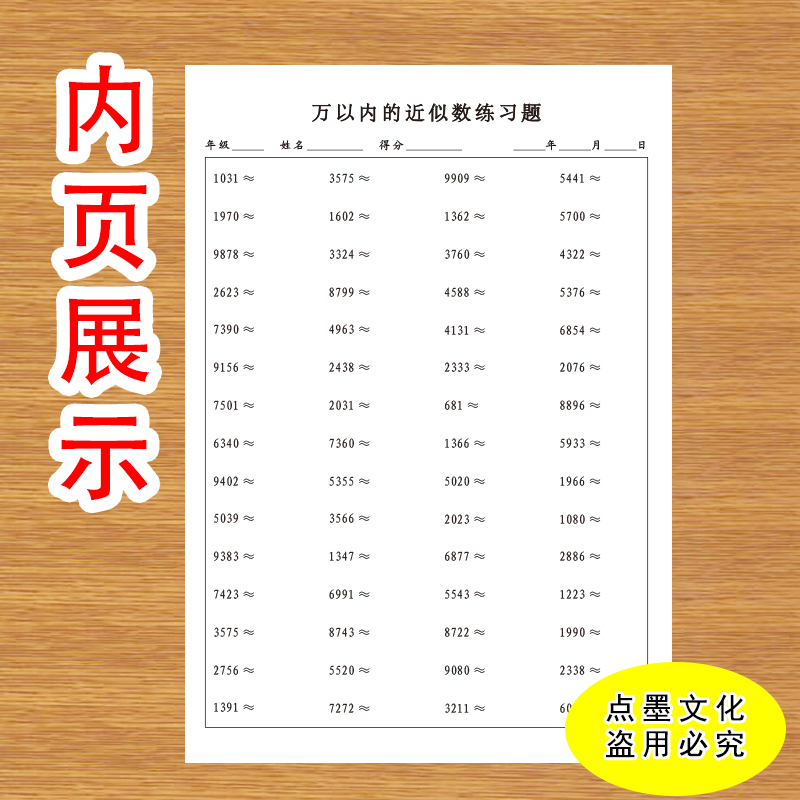 万以内的近似数练习题小学生万以内的四舍五入近似数每日一练专项练习题