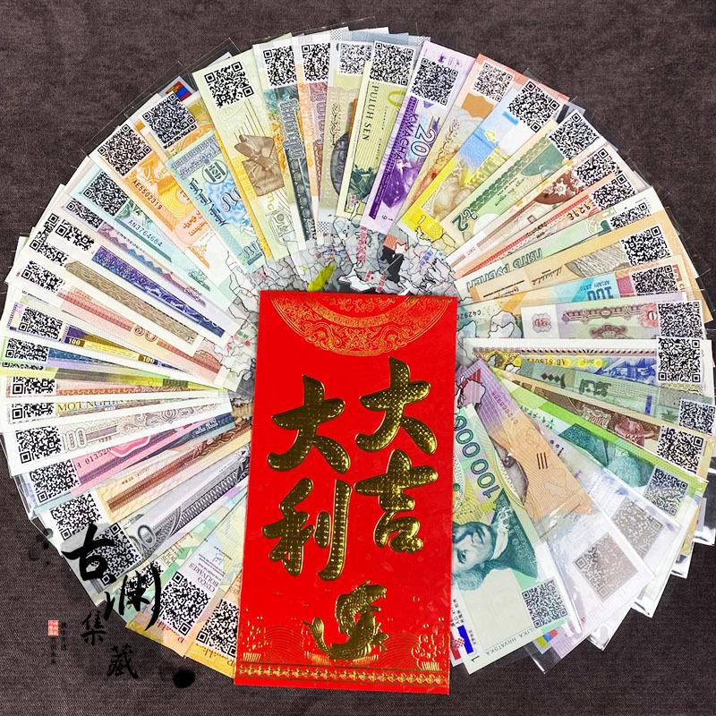 世界钱币28国52张外国纸币真币国外钱币红包版收藏压岁纪念钞纸钞
