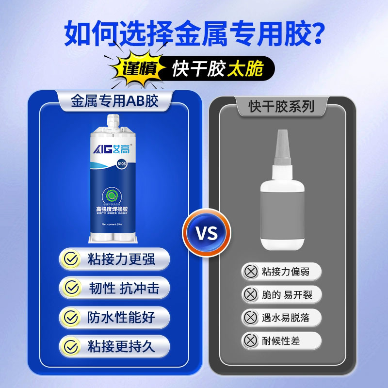艾高6106粘铝合金的专用胶超强力粘合剂粘接门窗把手铝合金收边条替代焊接耐高温抗冲击强力丙烯酸ab胶