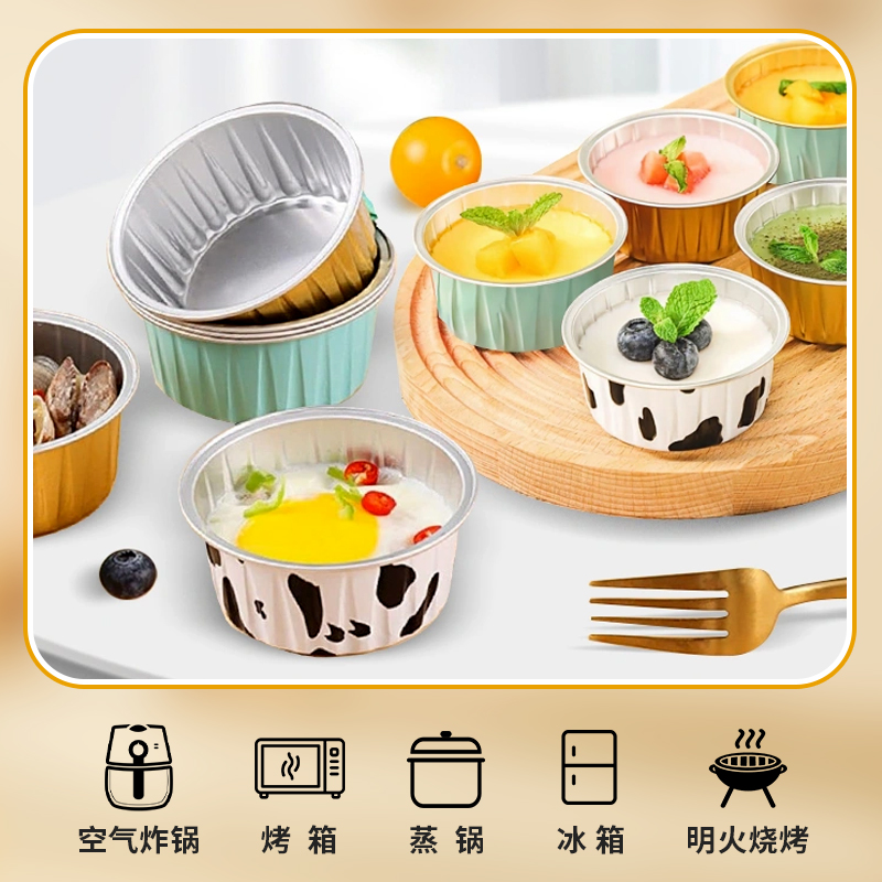 空气炸锅专用锡纸碗烤箱烘焙布丁杯商家用小圆形铝箔盒可重复使用