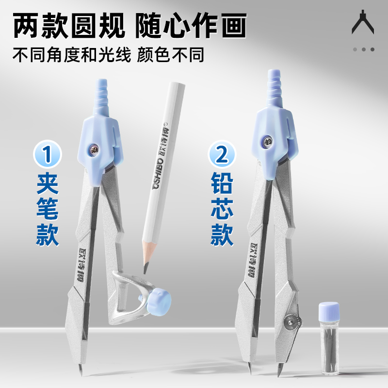 圆规尺子套装学生用画图工具初中生考试专用专业绘图尺规中小学生夹笔款见光变色三角尺量角尺直尺可夹笔圆规