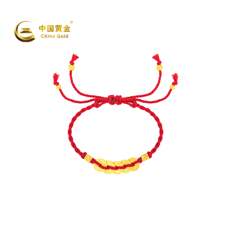 【中国黄金官方店】足金古法盘缠五帝币编织手绳时尚气质蛇年新品