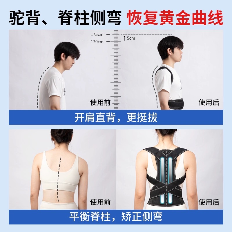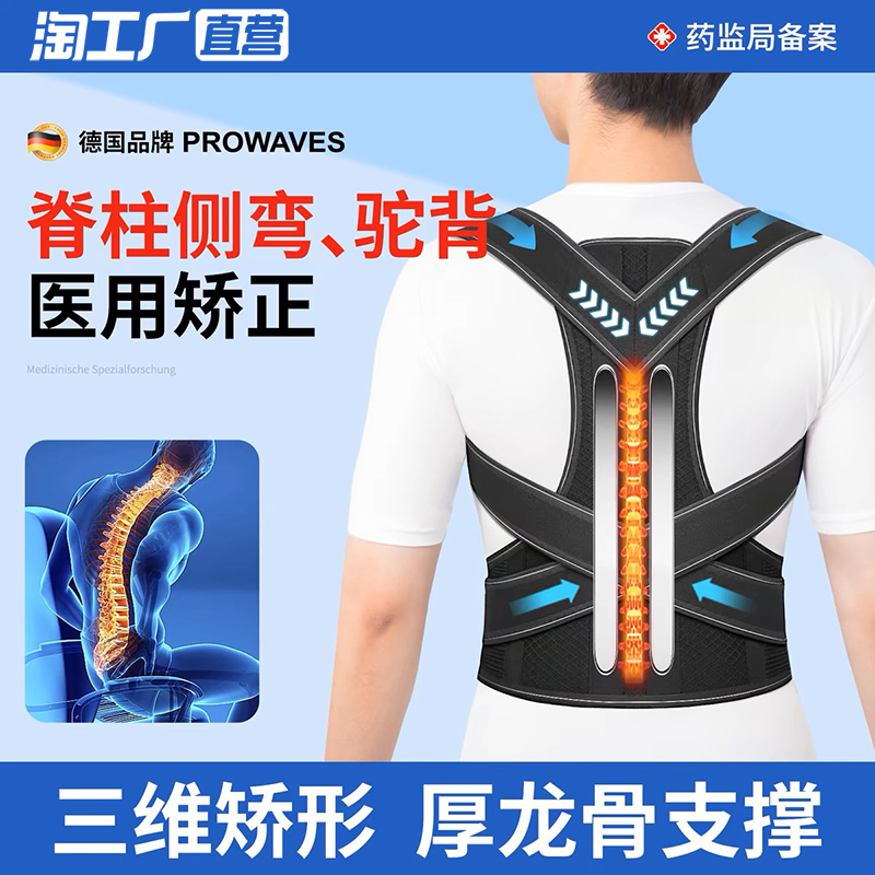 医用驼背矫正器女成人男士脊椎柱侧弯肩背部护腰矫姿带纠正神器