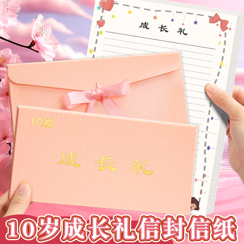 信纸信封套装10十岁成长礼和贺卡复古国风仪式高级感送小学生儿童可爱卡通好看的高颜值精美款手写书一封签笺