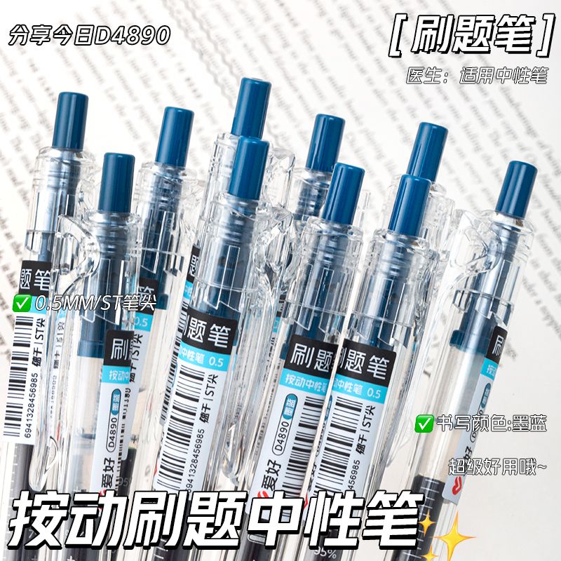 ST刷题笔高颜值按动中性笔圆珠笔黑色水笔小学生专用考试0.5速干碳素笔水性黑笔按压式做笔记签字笔非按斤卖