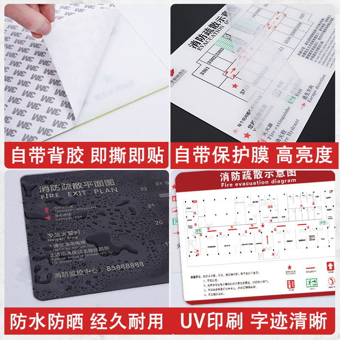 消防安全疏散示意图贴纸设计应急逃生平面图亚克力消防安全通道指示牌逃生路线图定制宾馆酒店标志牌指示牌