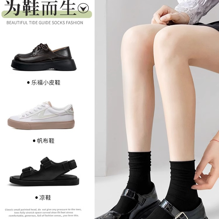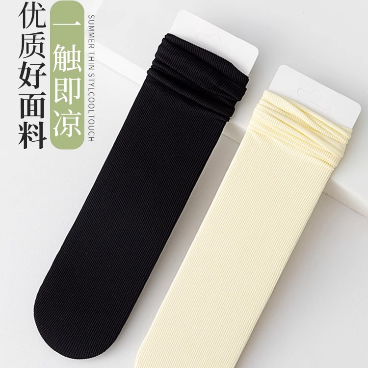 夏季女袜子薄款中筒袜天鹅绒透气防臭女士日系堆堆袜女白色冰冰袜