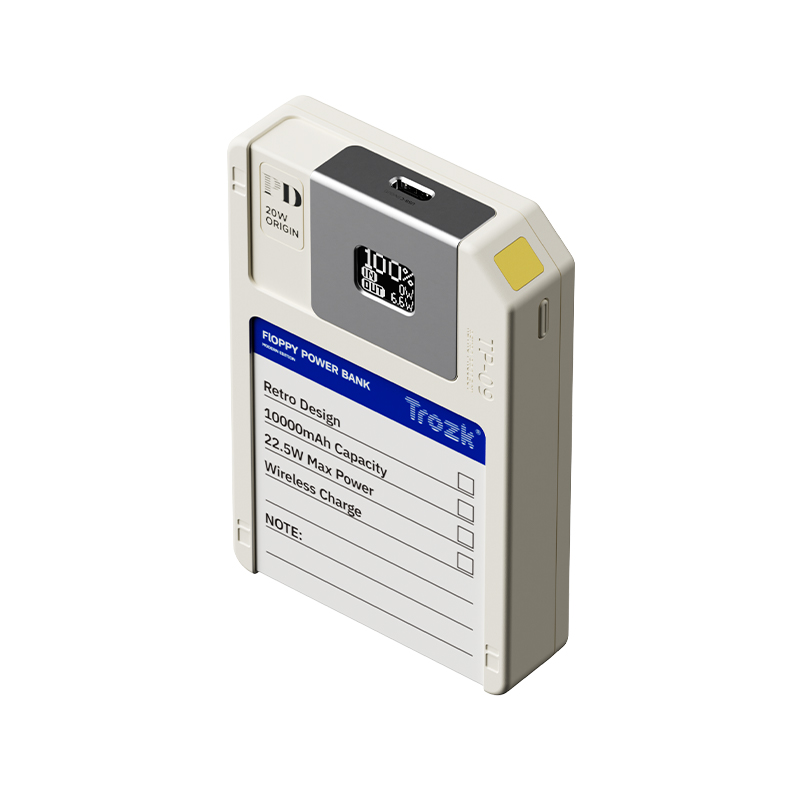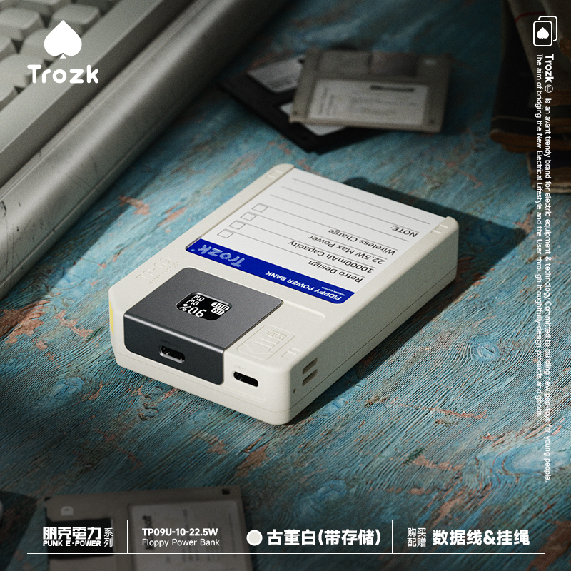 特洛克新款软盘磁吸无线充电宝快充大容量自带存储便携移动电源