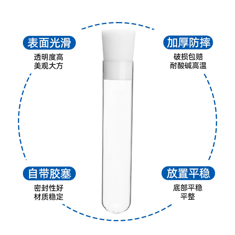 平口圆底玻璃试管12*75 15*100 15*150 18*150 18*180 20*200mm硅胶塞试管塞试管架耐高温物理化学实验室仪器