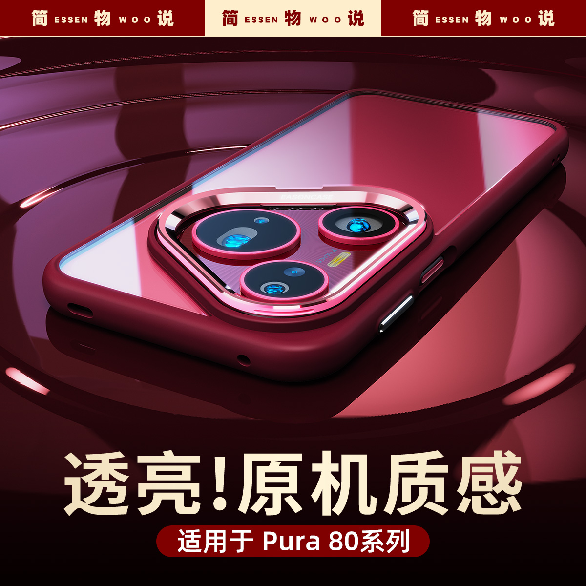 简物说适用华为pura70Ultra手机壳pura80pro镜框支架P70pro新款高级简约pura70透明外壳男女全包防摔情侣创意