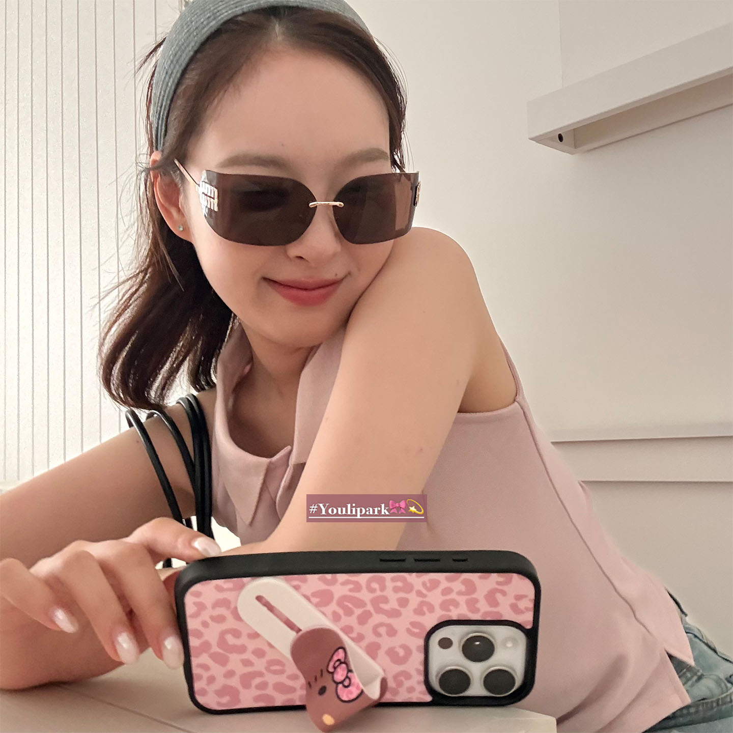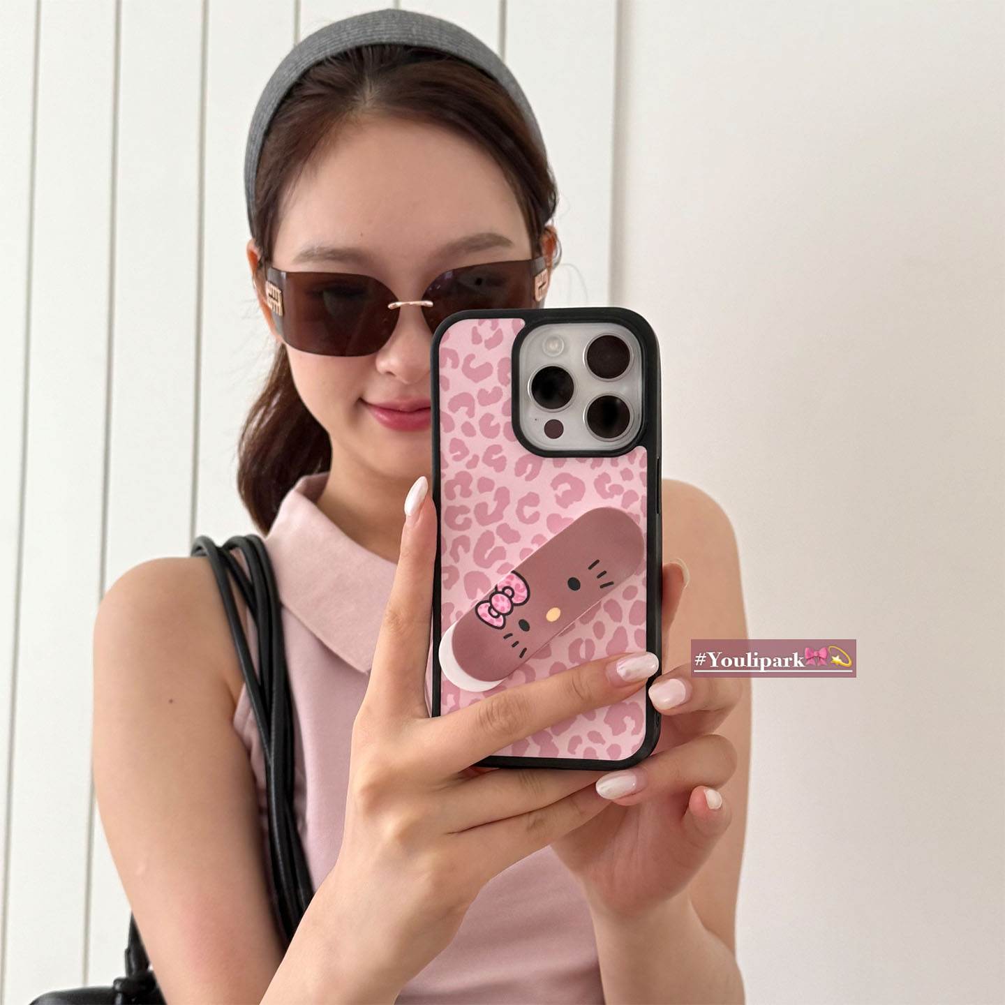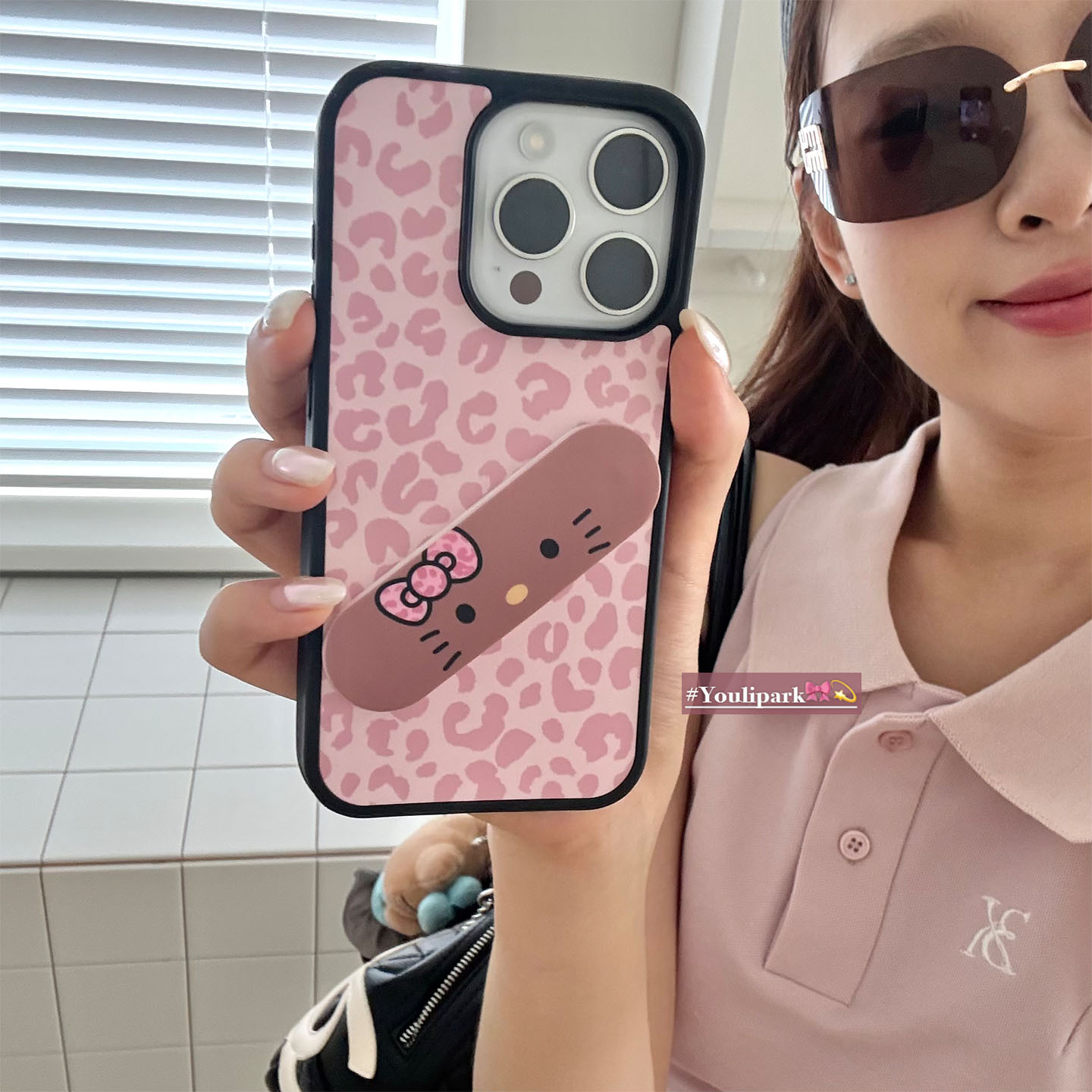 由里公园ins甜酷辣妹豹纹猫咪创口贴支架15适用17pro苹果17ProMax手机壳iPhone16全包17新款14Promax保护套13