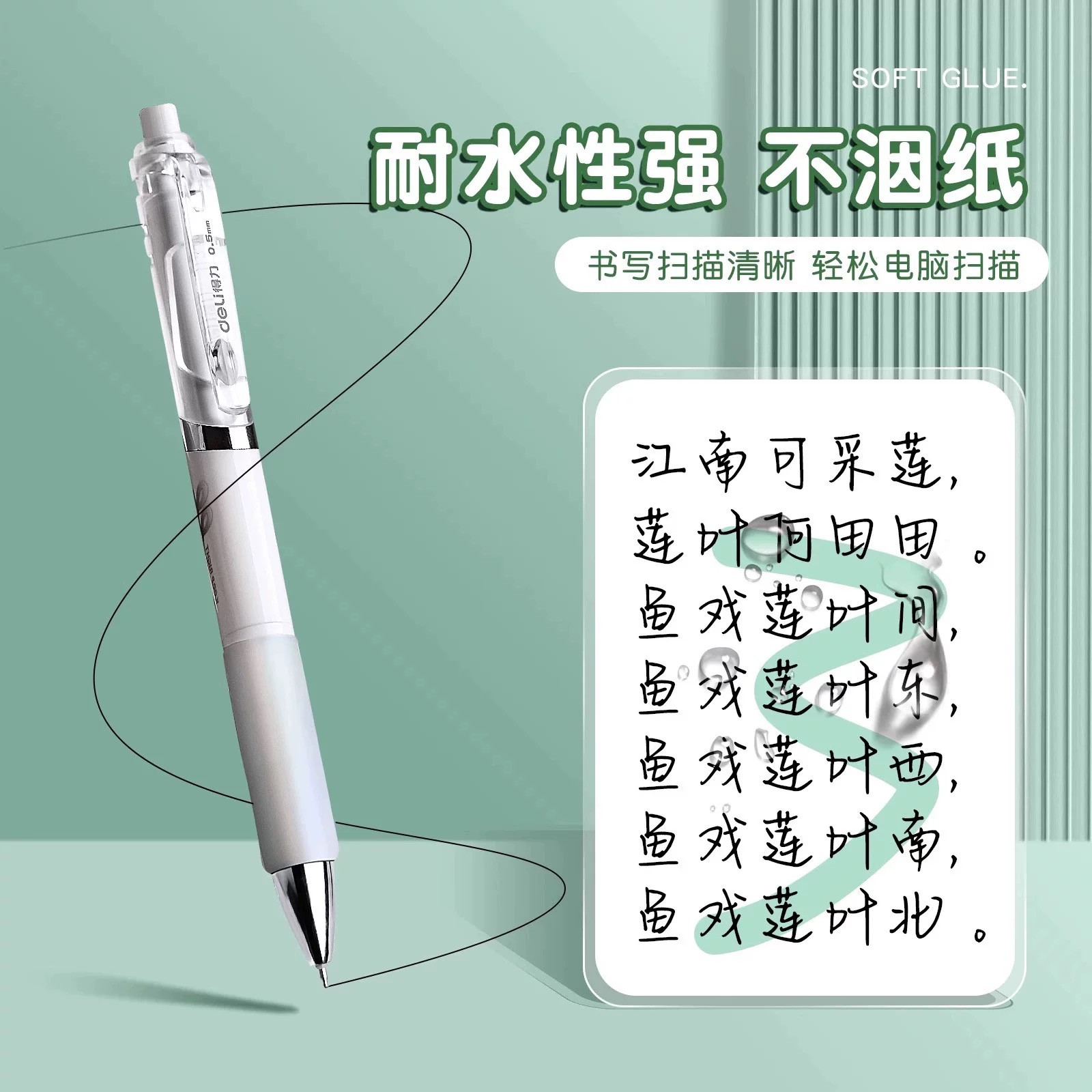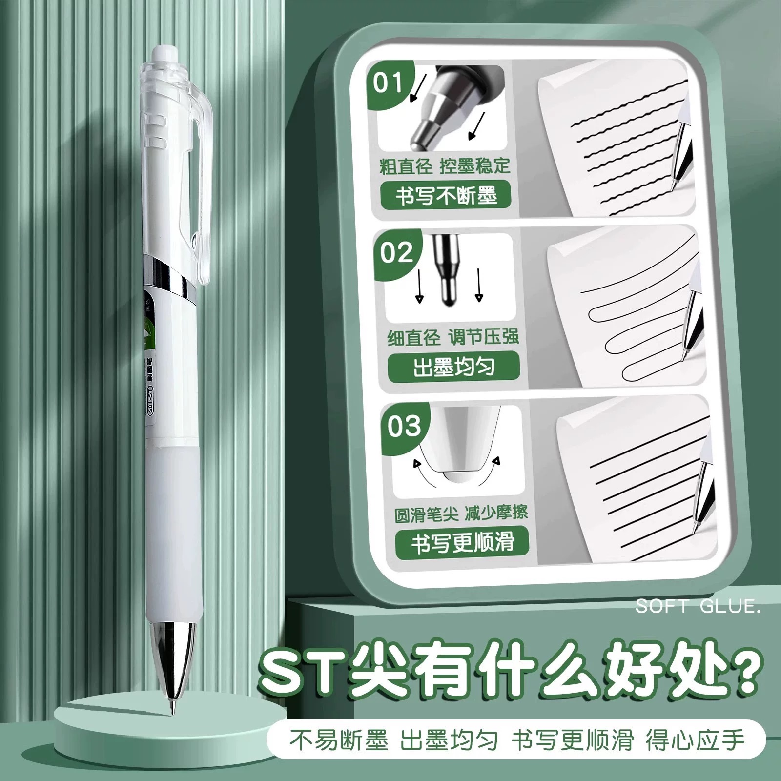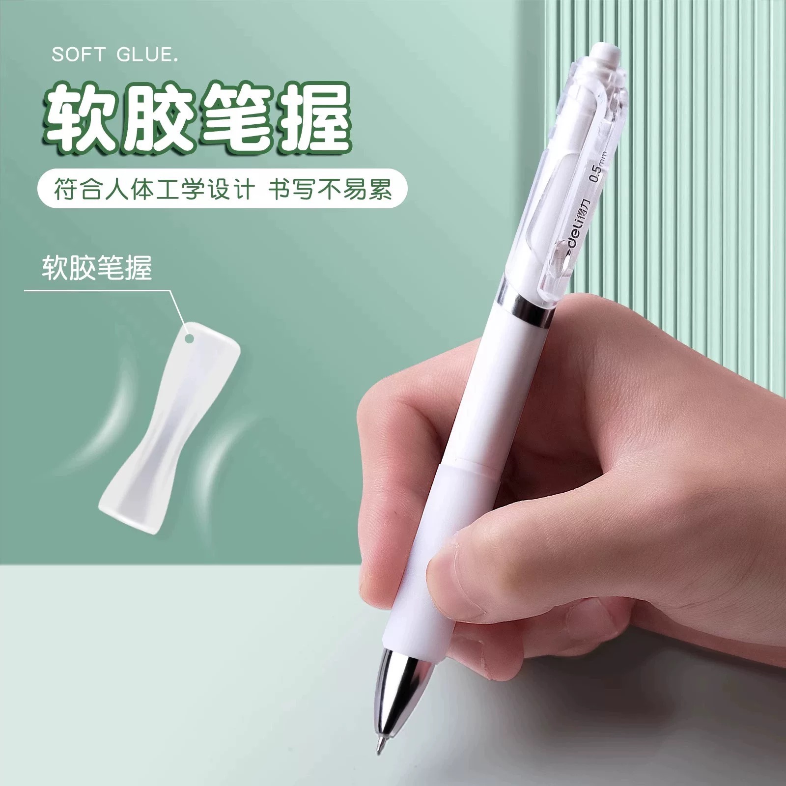 得力按动笔小白笔ST尖头黑笔按动中性笔学生用碳素笔ins高颜值顺滑考试刷题笔速干中高考备考考研文具xx