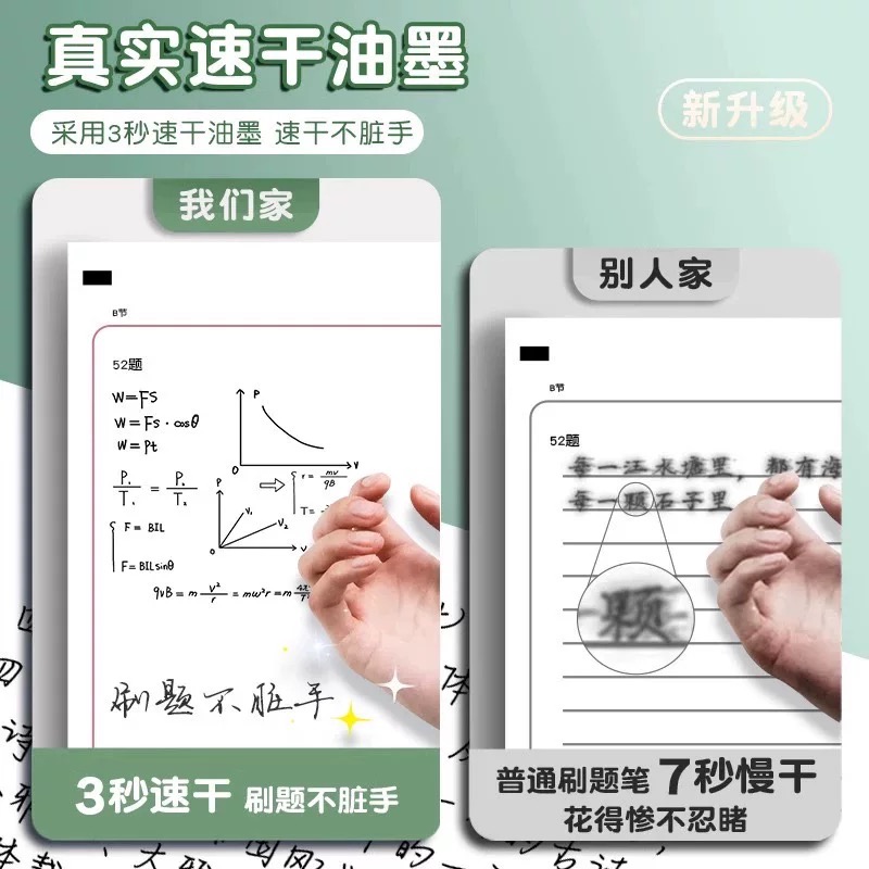 ST刷题笔高颜值按动中性笔圆珠笔黑色水笔小学生专用考试0.5速干碳素笔水性黑笔按压式做笔记签字笔非按斤卖