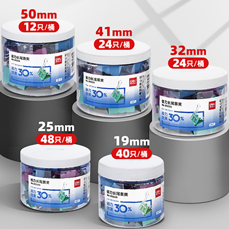 得力省力长尾夹大号彩色文件夹子文具燕尾夹鱼尾夹混装试卷小号书铁夹子固定办公用品金属票夹蝴蝶夹凤尾夹