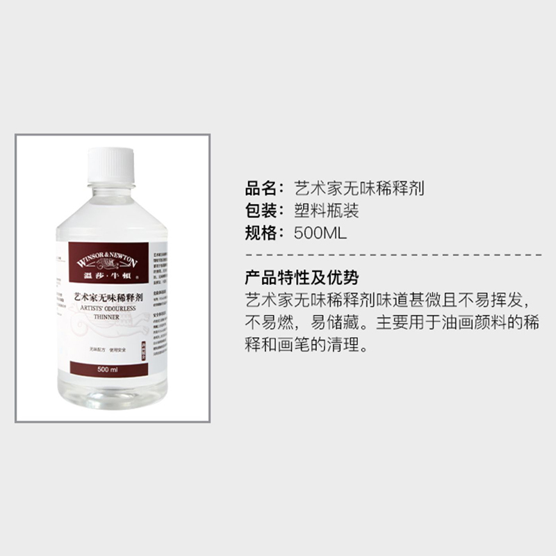 温莎牛顿油画洗笔液500ml瓶装油画清洗剂稀释剂去污无色无味洗笔颜料画笔色彩水彩笔水粉笔清洗剂美术生专用