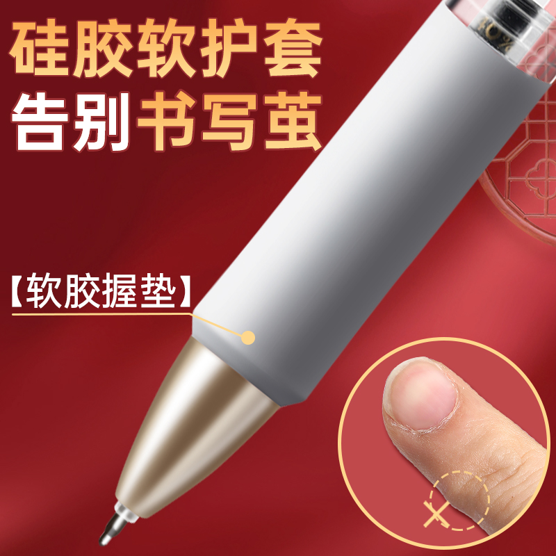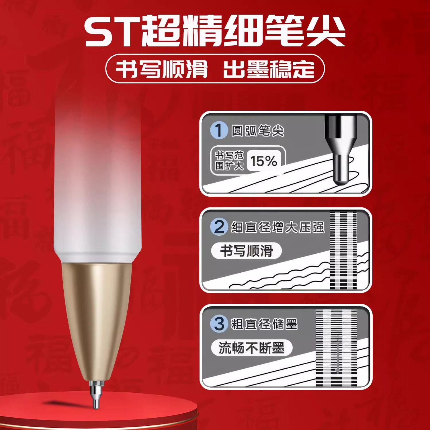 三年二班×点石红笔速干学生用红色中性笔老师专用粗头批改作业高颜值柔绘笔直液式刷题笔圆珠笔勃艮第红水笔