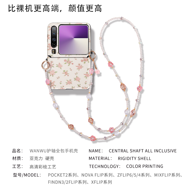 日系ins花卉适用于华为purax手机壳全包三星zflip7外壳中轴保护pocket2小众nova花朵mixflip2斜挎背挂绳链条
