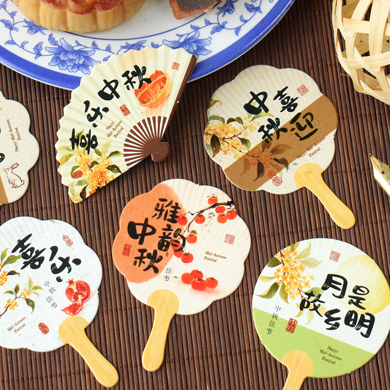 中秋节快乐国潮迷你扇子贺卡甜品店糕点蛋糕四果汤冰激凌装饰插卡祝福文字留言卡中国风新中式小学生用卡片纸