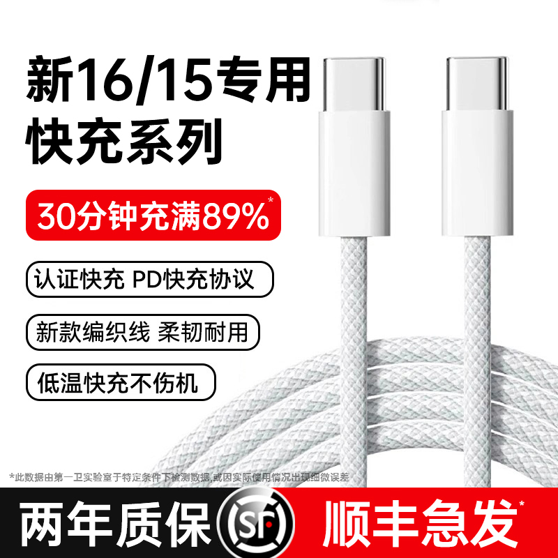 【顺丰】45W第一卫适用苹果17充电器线iPhone16promax数据线15编织款14双type闪13pd快充12手机ipad原正装品