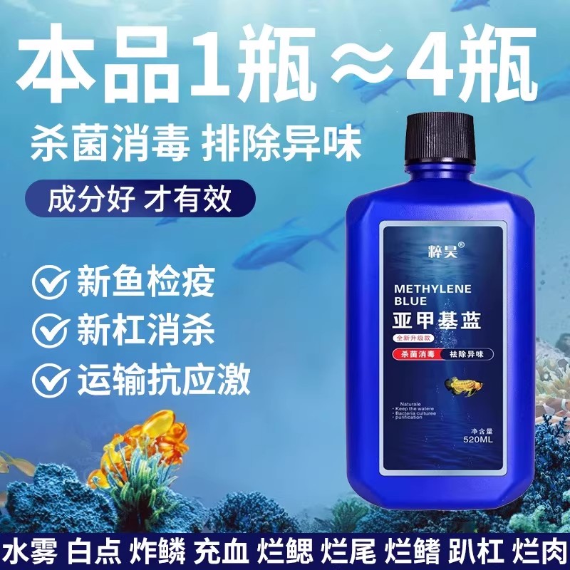 亚甲基蓝水族鱼专用专治烂身烂尾水霉白点病鱼缸杀菌消毒浓缩溶液