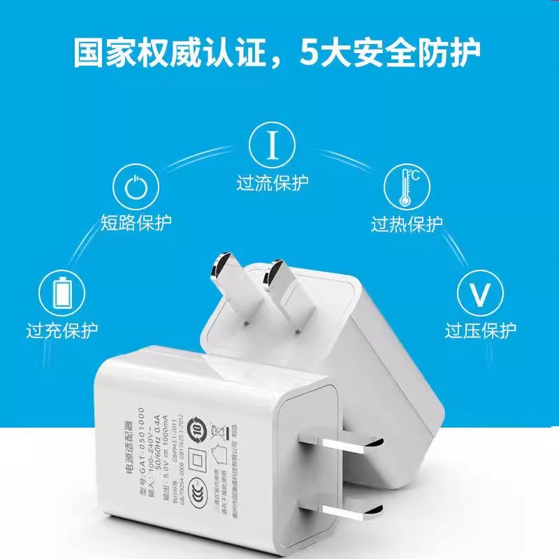 5V1A手机充电器3C认证充电头适用小家电手机USB5v2a双头充电器三合数据线通用耳机手环手表台灯慢充插头