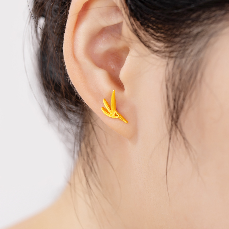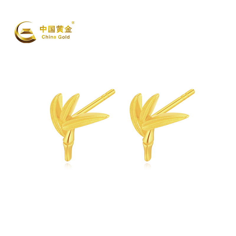 【中国黄金官方店】足金简约竹叶直针耳饰时尚气质竹报平安新品