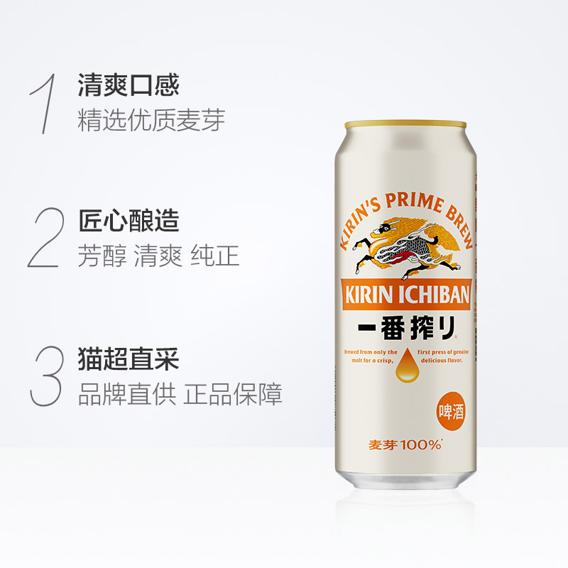 日本KIRIN/麒麟啤酒一番榨系列500ml*24罐清爽麦芽啤酒整箱