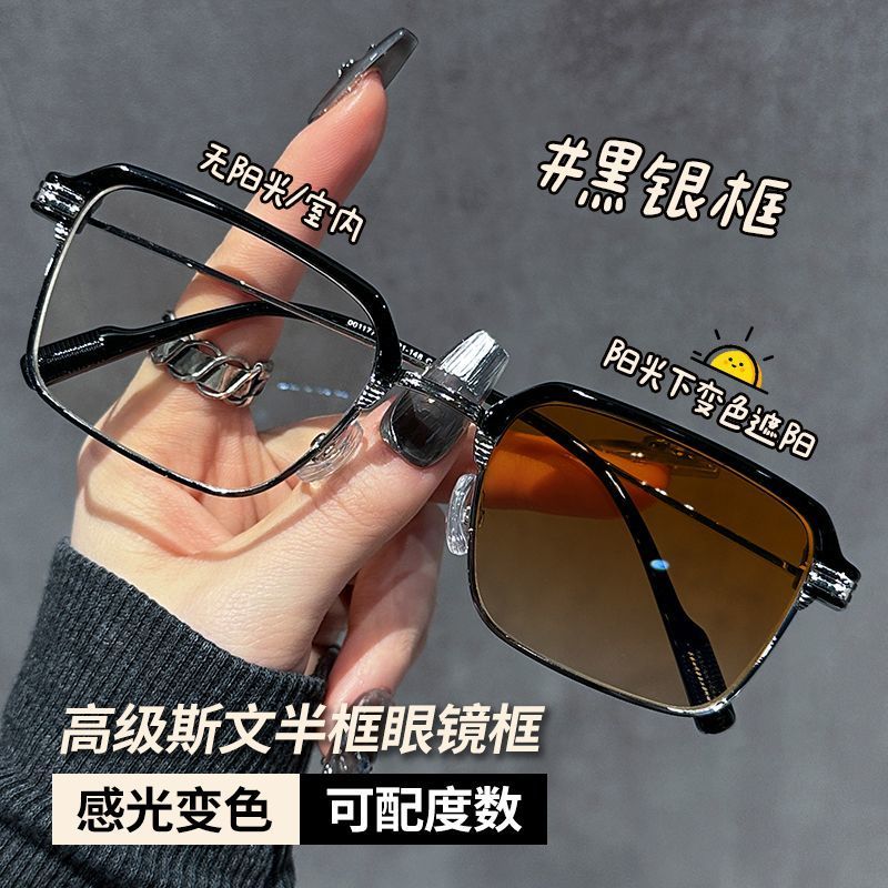 感光男女防蓝光辐射抗疲劳平光眼镜半框护眼防近视无度数变色两用