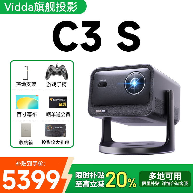 【政府补贴至高立减20%】Vidda C3S投影仪海信MT9681光学变焦家用超高清高亮客厅家庭影院三色激4K云台投影机