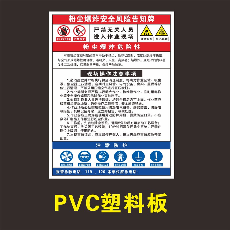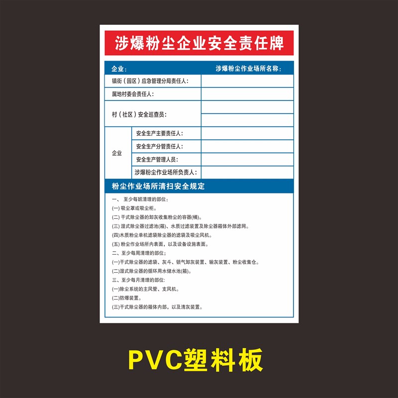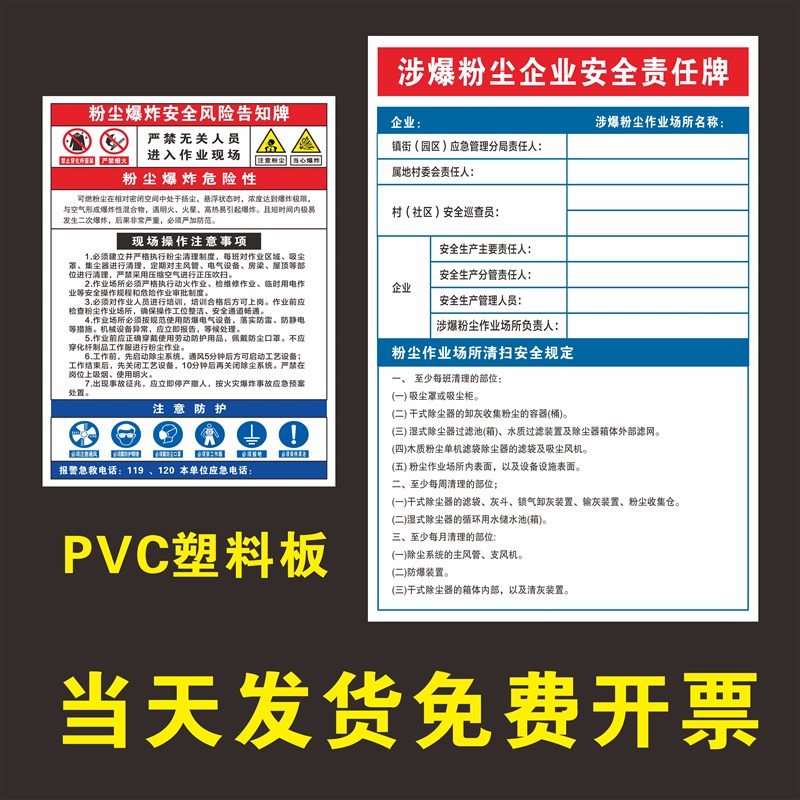 热销粉尘爆炸风险告知牌涉爆粉尘企业责任牌粉尘清扫制度粉六条规