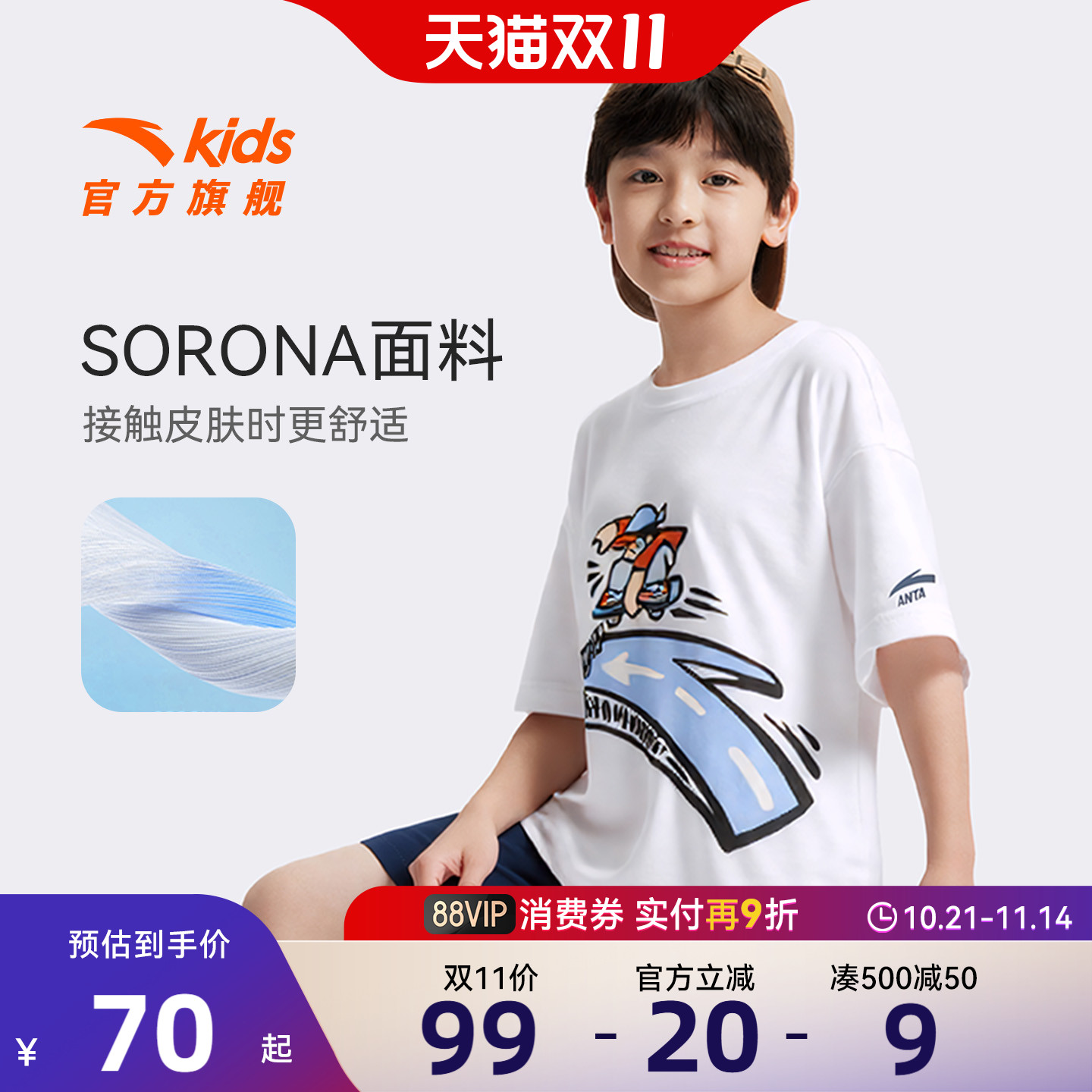 安踏儿童SORONA短袖T恤丨亲肤男大童短T2025夏季新款透气舒适休闲