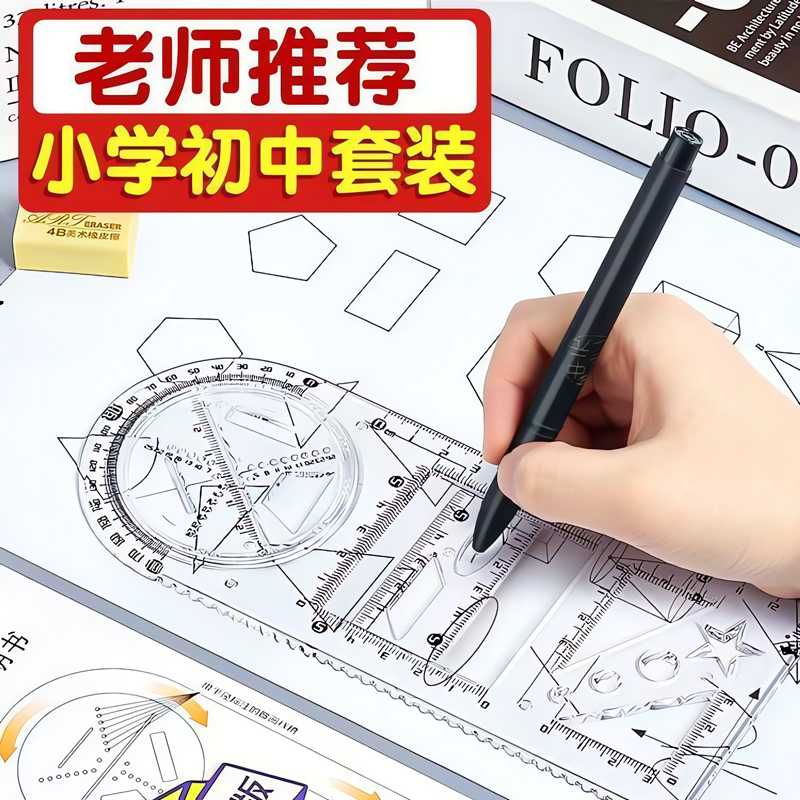 活动尺绘图尺子中小学几何图形绘画尺可旋转直角小学生函数通用尺